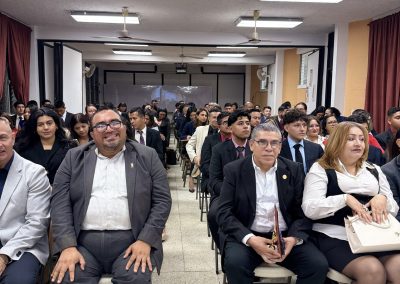 El evento que se desarrolló en la víspera de la celebración del cuadragésimo quinto aniversario fue presidido por la Directora de esta casa de estudios, la Dra. Claribel del Carmen Calderón, la Mtra. Beatriz Campos de Flores, Administradora Académica y el Mtro. Gustavo Valdivieso, quien brindó una charla motivacional a los más de 200 estudiantes que asistieron.